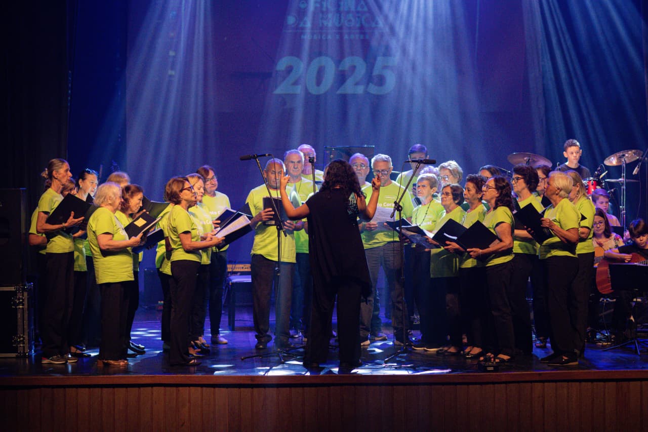 Com mais de 40 integrantes, em sua maioria idosos, o Canto Coral AMU é regido pela professora musicista Larissa Magrinelli Moreira. Durante a apresentação, o grupo compartilhou seu trabalho vocal com o público, reforçando a importância da música como ferramenta de convivência, expressão e bem-estar.
