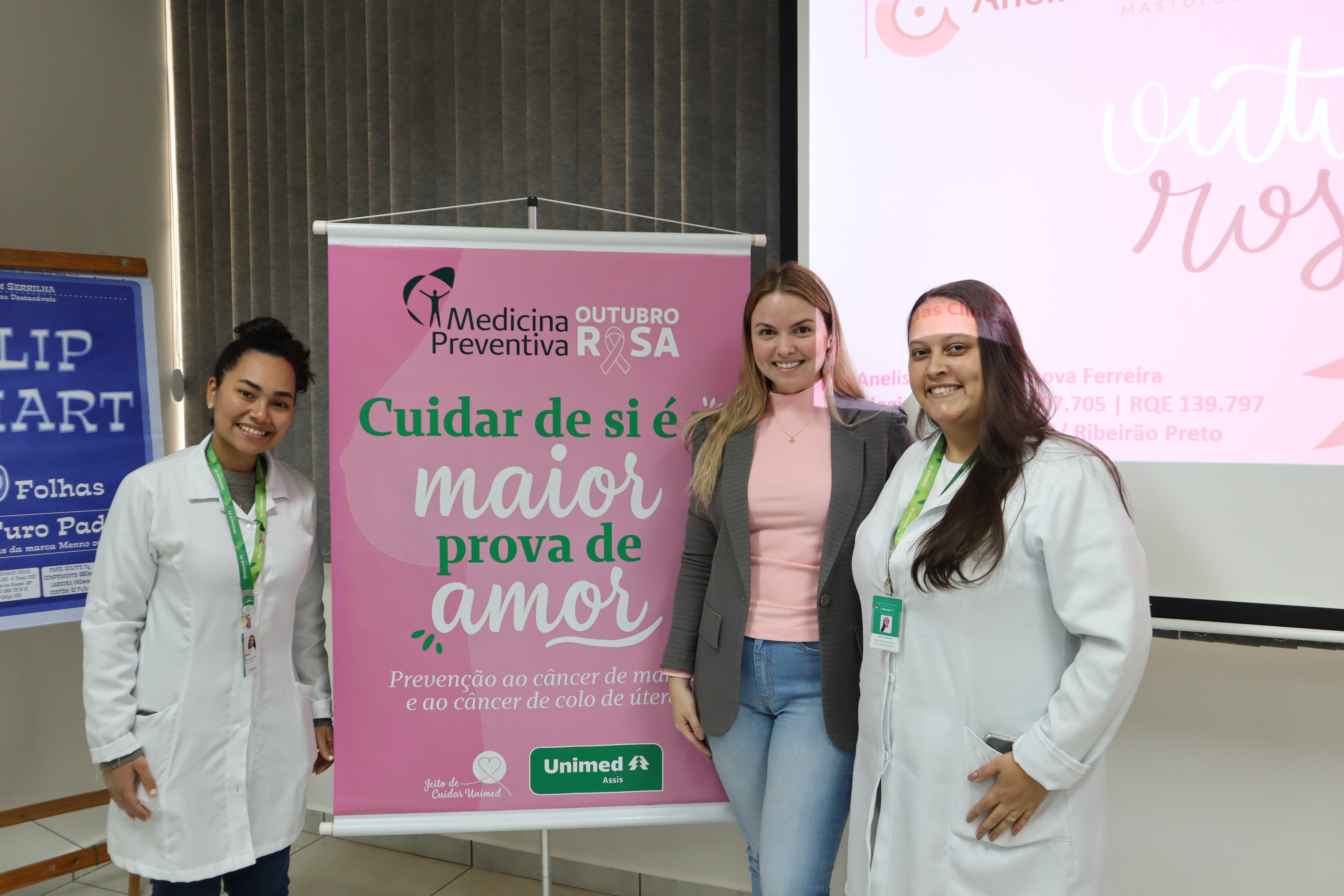 Durante o mês de outubro, a Unimed Assis promoveu uma série de palestras e ações voltadas à conscientização sobre o câncer de mama e do colo do útero, reforçando seu compromisso com a promoção da saúde e a prevenção de doenças.